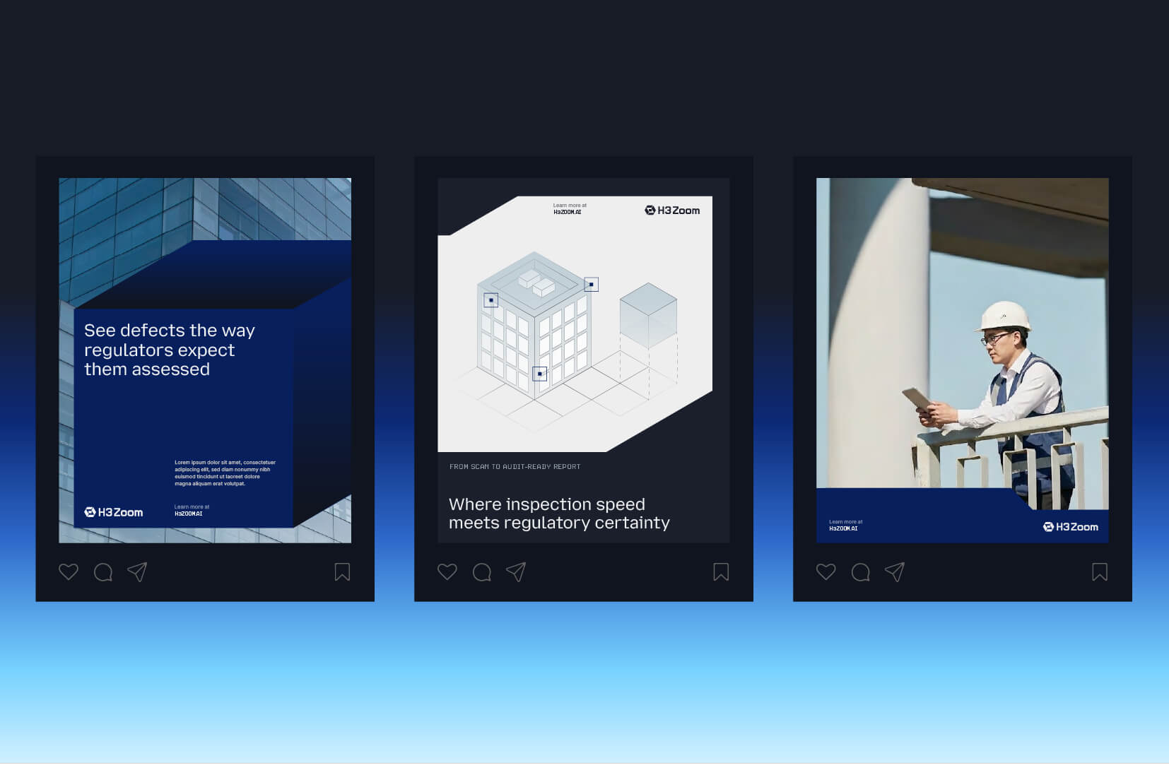 The visual language to the platform storytelling, was designed to reinforce trust and clarity. The system ensures H3 Zoom is recognised not as a service provider, but as an inspection intelligence platform built for long-term asset management and compliance.